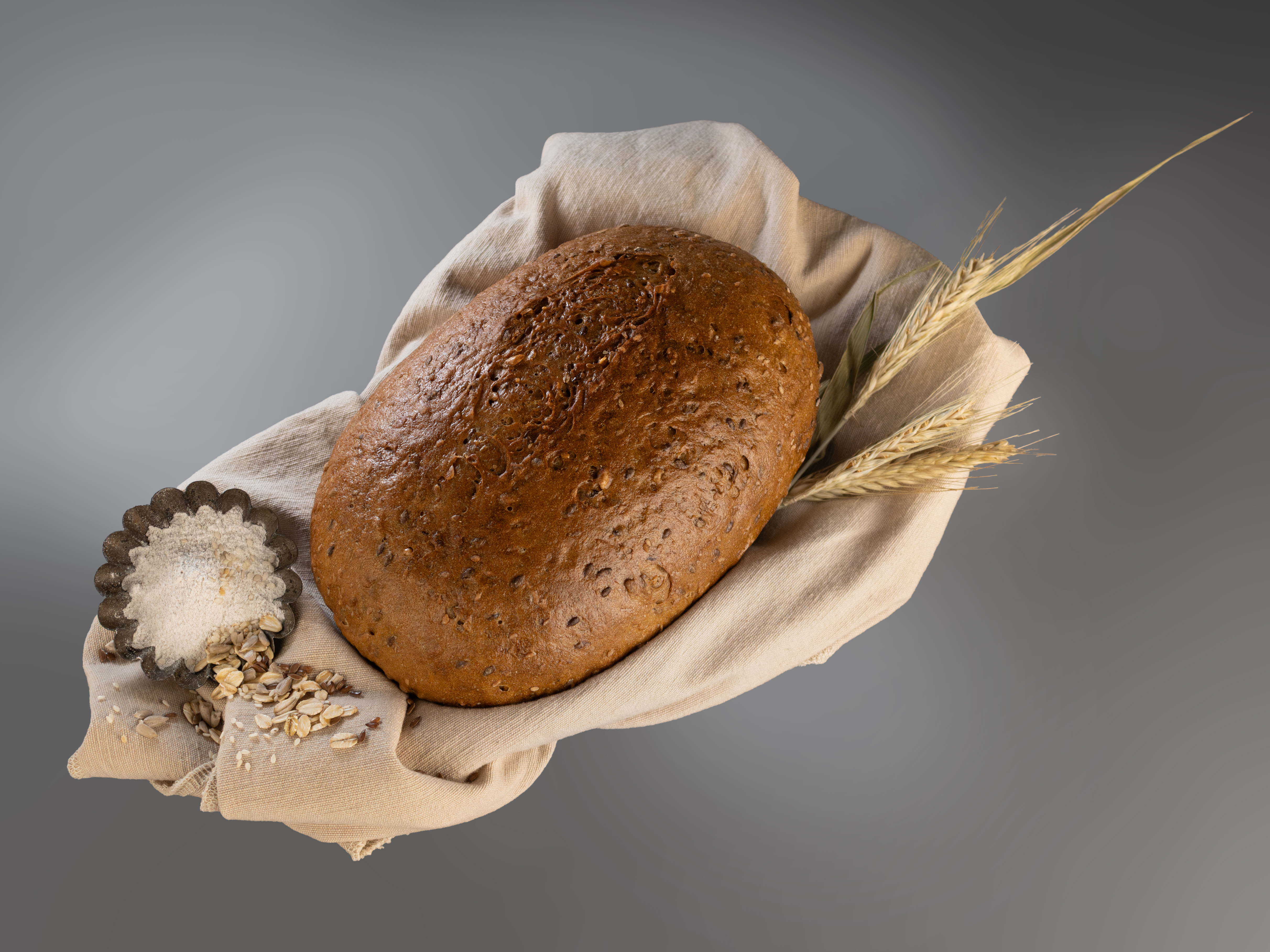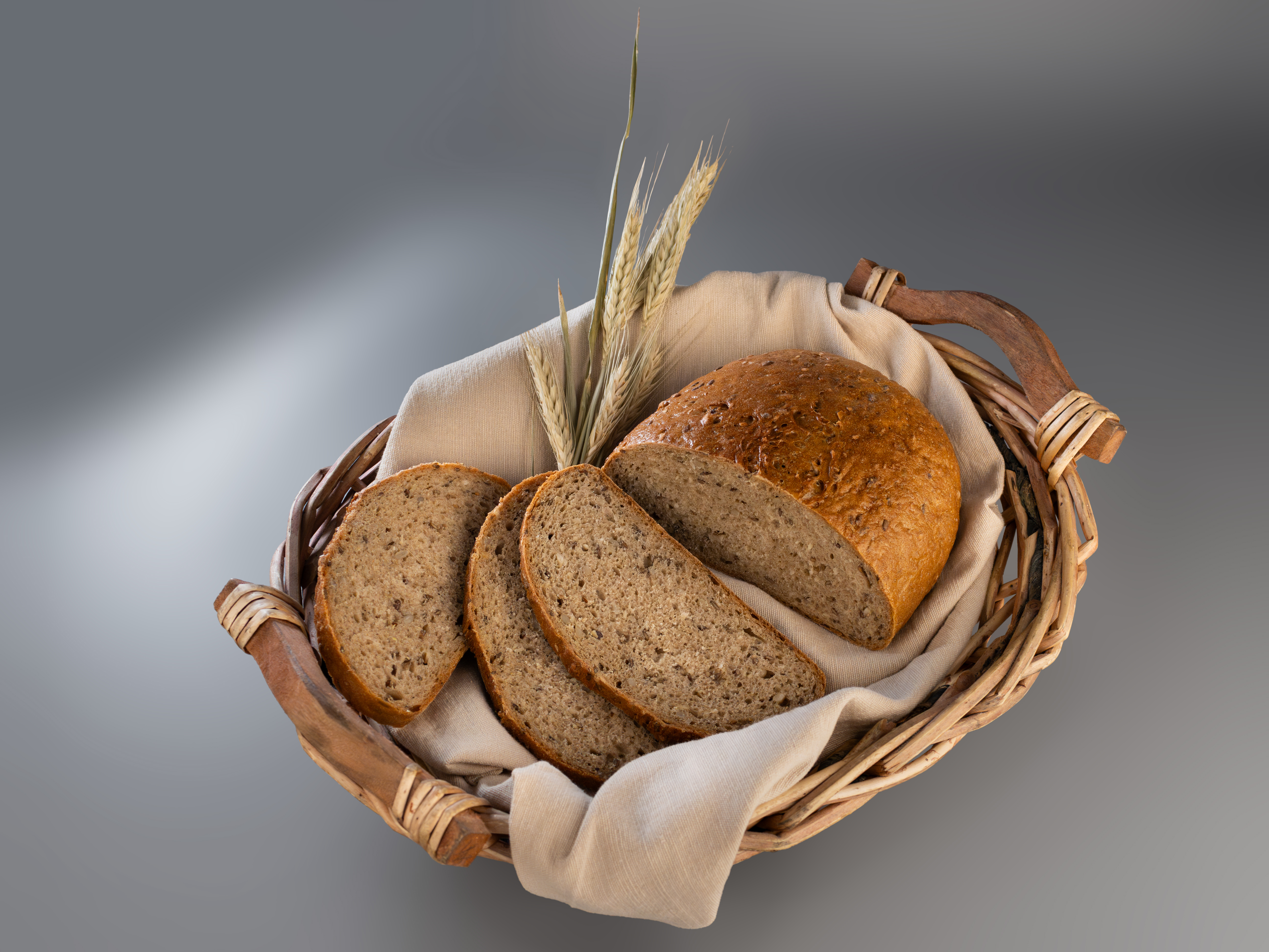 Die Basis dieses Rezeptes ist ein klassisches Roggenmischbrot mit ca. 70% Roggen- und 30% Weizenmehlanteil (Getreidemischverhältnis), verfeinert mit Sesam- und Leinsamsaaten,Sonnenblumenkernen, Hafervollkornschrot und Kartoffelflocken, abgerundet mit etwas Gerstmalzmehl. Der aromatisch-nussige Geschmack wird Sie überzeugen. Im Angebot auch an Sonn- und Feiertagen, frisch für Sie in der Filiale gebacken. Aufgrund der speziellen Teigführung ist die Krume schön locker und weich. Empfehlung für Sie: kaufen Sie das Brot als halbgebackenen Rohling, können Sie es zu Hause ausbacken bei ca. 220 °C, 20-25 min und Sie haben ein ofenfrisches Bäckerbrot für Ihre Familie und Gäste. Streichen Sie das Brot vor und nach dem Backen mit kaltem Leitungswasser ein. Wird mit unserem eigenen Natursauerteig hergestellt. VEGAN